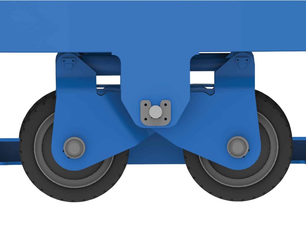Design is based on our new scissor suspension system. A double-wishbone suspension is used on both sides. One single pivot point with hydraulic cylinder for lifting and lowering the load. Solution allows for effective work, and high responsiveness to terrain unevenness. Thanks to the use of one axle, the suspension also adjusts to the angle of the terrain.